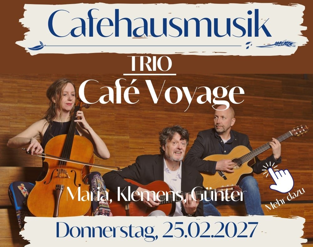 Ein Songpoet, der auch die Zwischentöne findet, eine klassische Cellistin, die über den Tellerrand des Orchesters hinausschaut und ein versierter und kreativer Jazz-Gitarrist laden ein! Das Münchner Trio bietet Songs und Texte, meist in deutscher Sprache und aus eigener Feder, die gleichzeitig berühren und unterhalten, Geschichten erzählen und zum Träumen, zum Genießen, zum Mitswingen aber auch zum Querdenken im eigentlichen Sinn einladen!